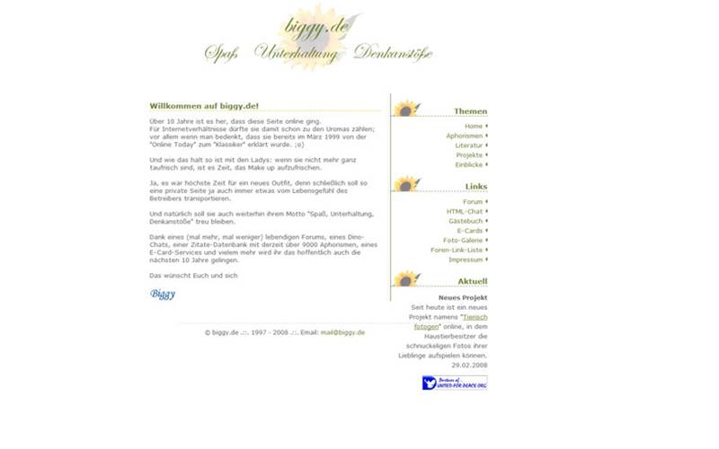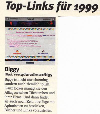 Kaum zu glauben: Bereits 1997 ging meine kleine Seite ans Netz – und seitdem ist **Biggy.de ohne Unterbrechung online**. Damals war das Internet noch jung, Domains waren Luxus, und trotzdem durfte meine Seite schon 1999 von Online Today als „Klassiker“ und TOP-Link gefeiert werden.